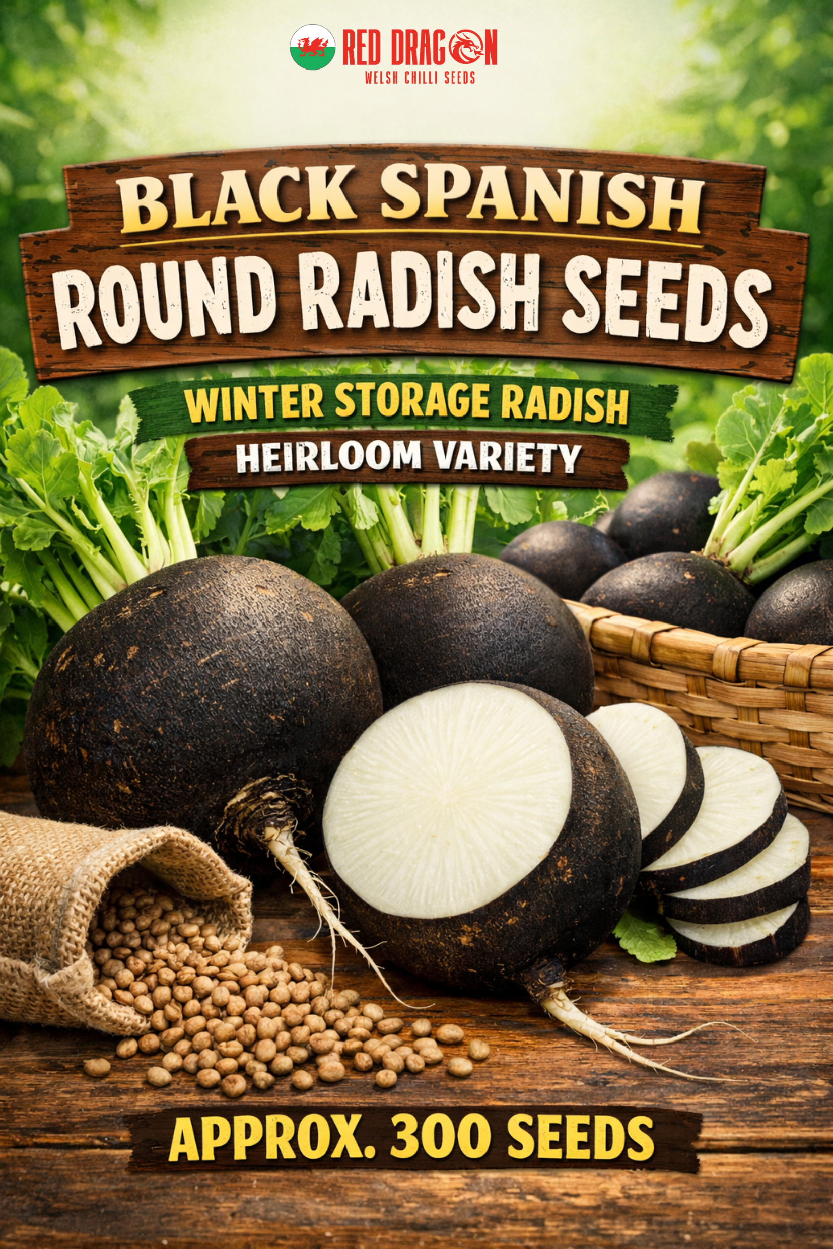 Black Spanish Round Radish is a classic winter radish producing round black roots with firm, white flesh. It has a strong, traditional radish flavour and excellent keeping qualities for late-season harvests.